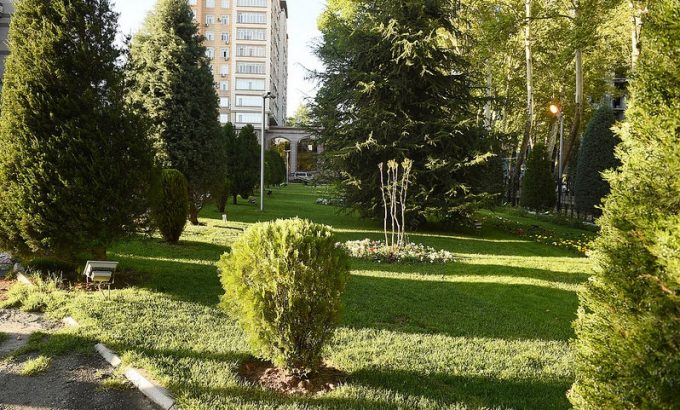 Бунёди гулгашту хиёбонҳои нав дар назди бинои маъмурии Бонки миллӣ