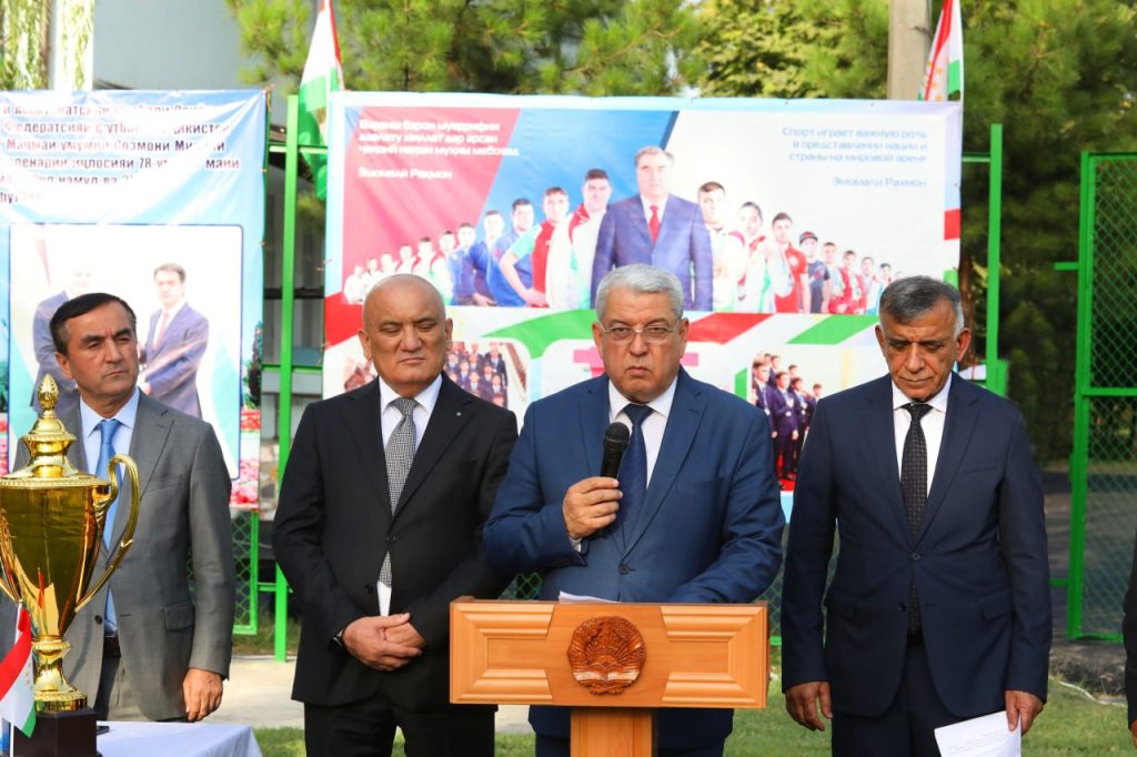 Дар расми баргузории чамъомади мазкур Амирзода Абдухолиқ Амир-муовини вазири тандурустӣ ва ҳифзи иҷтимоии аҳолии Ҷумҳурии Тоҷикистон кулли ҷамъомадагонро ба мавриди истифода қарор гирифтани чунин як варзишгоҳи бошукӯҳ таҳният гуфта, иштирокдорони чорабиниро ба оғози мусобиқаи ҳаждаҳуми футболи хурд миёни дастаҳои мардонаи муассисаҳои тандурустӣ ва ҳифзи иҷтимоии аҳолӣ шодбош гуфт.